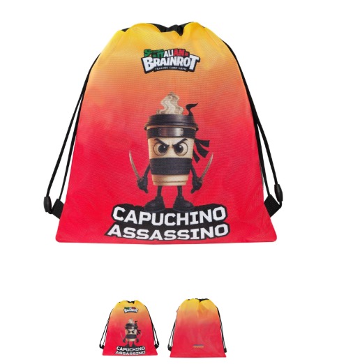 Brainrot Capuchino – Sacca a Zaino Coulisse, Scuola e Tempo Libero 34 x 42h cm