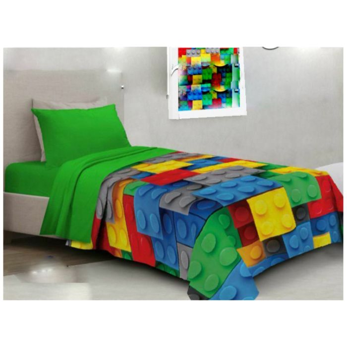 Trapuntino trapuntato con stampa digitale play game lego costruzioni,ideale per completare l’allestimento della cameretta dei vostri piccoli.Trapuntino Colorato allegro e armonioso ideali per le stagiogioni primaverili ed autunnali Dimensioni: Singolo:170×250 cm