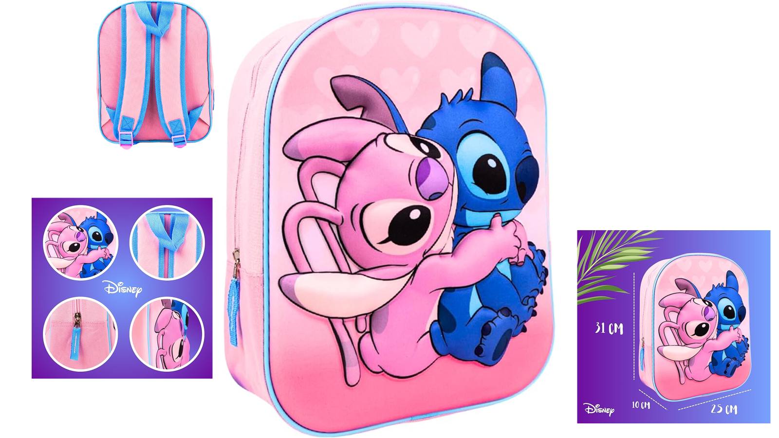 ZAINO SCUOLA DI STITCH: Abbiamo creato il nostro zaino per bambini affinché sia il compagno ideale per le sue avventure fuori casa. Grazie alle sue bretelle e alla chiusura zip sarà molto comodo da portare a scuola.
